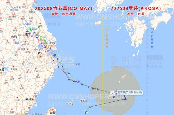 崇明气象台介绍:今年第8号台风“竹节草”的残余环流在琉球群岛附近再次发展为热带风暴,受其影响,崇明7月29-30日有明显风雨天气,累积雨量60~80毫米,局部120~160毫米;陆地最大阵风7~8级,长江口区9~10级。