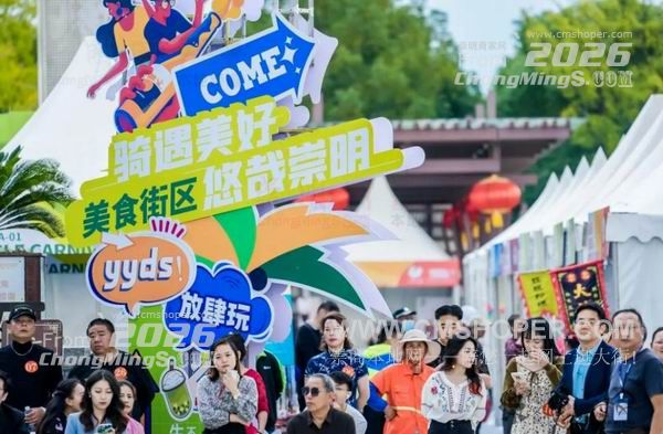 骑游嘉年华:10:00-20:00主会场市集,展销崇明美食、农产品及文创产品。